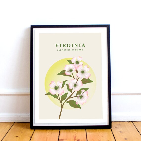 Virginia Print Virginia State Flower Poster Dogwood Etsy